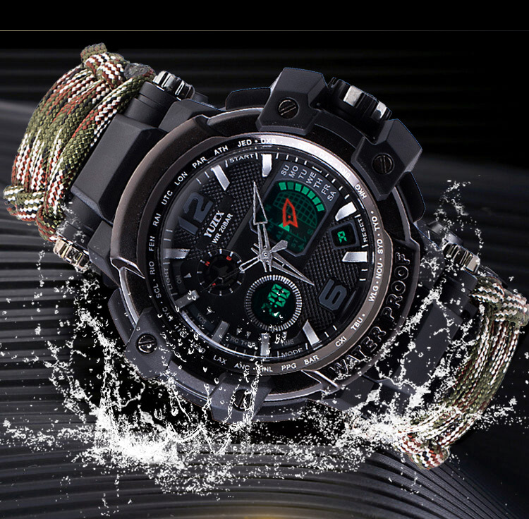 【Dual Display Military Watch】This is the most practical digital sports watch with super functional bracelet band , providing tons of uses to meet every potential need during outdoor survival. Supports both digital and analog displays, provides 2 different time zones for simultaneous setup and reading.