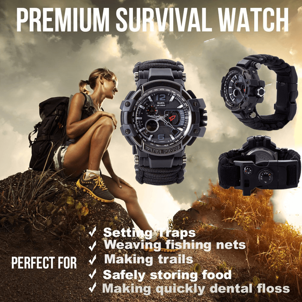 【23-IN-1 Multi-Functional Survival Watch】Most important of all is combining the tons of functions including compass, whistle, fire starter, SOS/Flash light, card pin, thermometer and other survival gears. Perfect choice for all kinds of outdoor sports and everyday